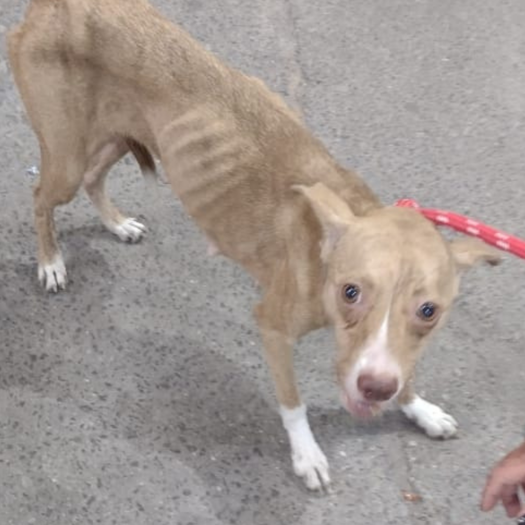 Resgatada das ruas em estado de desnutrição severa, Mel era apenas pele e osso. Com alimentação adequada e muito carinho, hoje é uma cachorrinha saudável, carinhosa e alegre que adora brincar e receber bastante colo.